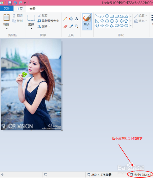 原相片135K要求变成30K以下,原”像素“大 ,为减小调整次数第一次调的梯度大点,水平方向相应调小一半为400,垂直方向数值会自动改变不用再改,然后”确定“。这时可直接看见图片下图的信息”像素“已变小,大小需要保存后才会变。
