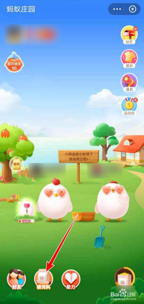 在蚂蚁庄园页面,客人在家,主人没在,点选下方的领饲料;