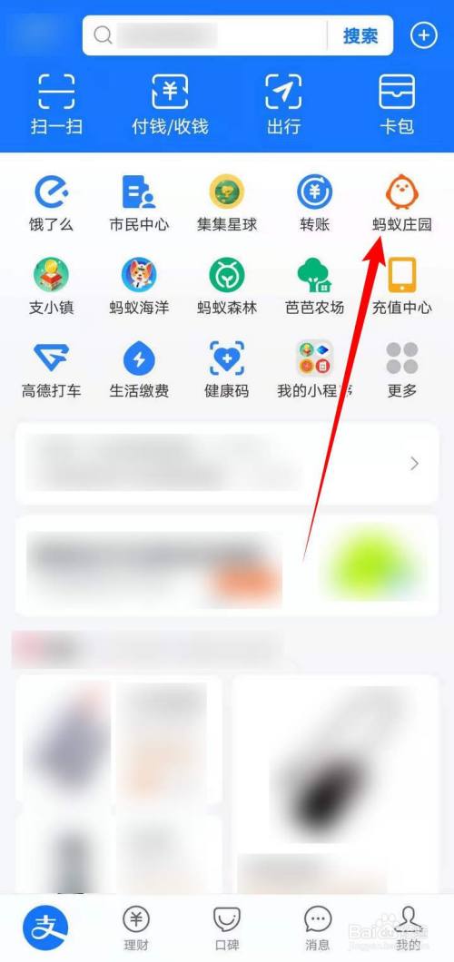 手机里找出支付宝APP,点选打开,在APP首页,点选蚂蚁庄园;