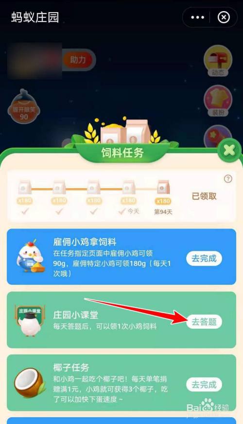 在任务列表页面,找到庄园小课堂,点选右侧去答题;