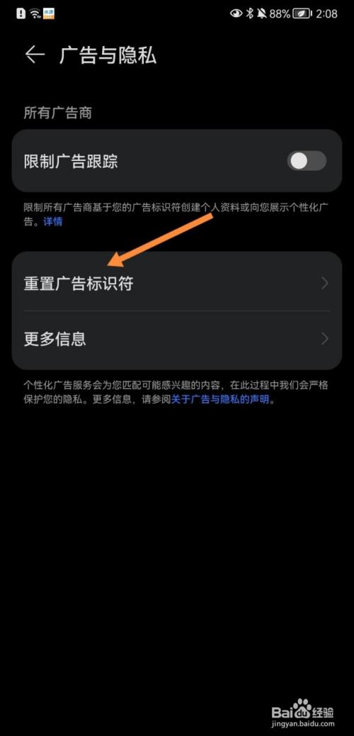 然后点击重置广告标识符