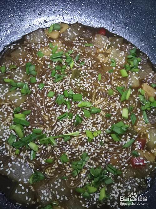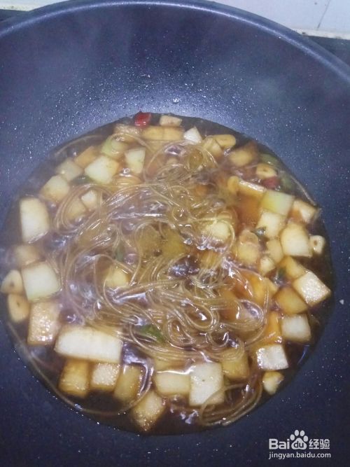 加入适量粉丝,盖上锅盖儿,煮一段时间,将粉丝煮熟就可以了。