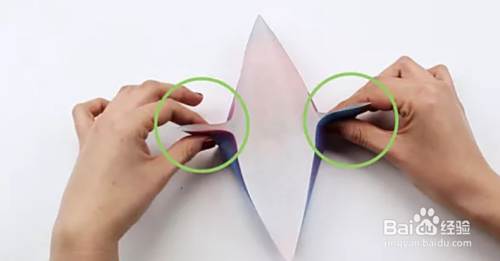 将两个三角形对半向外折叠。然后,山谷沿着主褶皱褶皱。