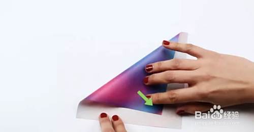 从一张纸的侧面开始。把其中一个角折成两半,到另一个角,然后做个折痕。然后,展开角落。