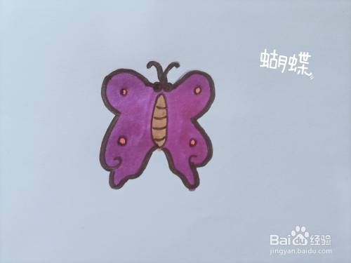 最后用马克笔涂上喜欢的颜色,蝴蝶画好了。