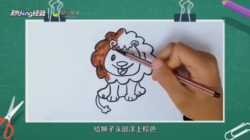 头部和身体涂上黄色,给狮子的表情涂上颜色。