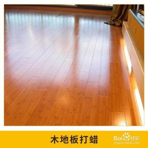 4、等到地面干燥后,再在其表面均匀的打蜡。 摇晃装有地板蜡的容器、并充分搅拌均匀。按照地板的木纹方向仔细涂抹、不要漏涂或薄厚不均。涂抹量过少会造成浓淡不均、涂抹过多又会导致造膜不良。保持薄厚均匀是打腊的关键。不可用水稀释地板腊。打蜡工具可使用打蜡专用拖布、操作简便、效果理想。