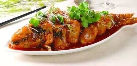 酱汁倒入水里后要不停的搅拌直至颜色变成焦糖色,也可以加入一些番茄酱颜色会更鲜艳。把做好的糖醋汁均匀的浇在之前炸好的鱼上,最后撒上香菜。美味的糖醋鲤鱼就出锅了。