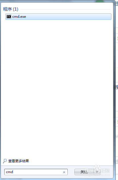 在搜索栏中键入“CMD”,进行搜索,在搜索结果中找到“cmd.exe”,