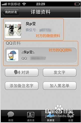 某个QQ好友注册了微信。可以查看对应这个QQ好友的微信资料。