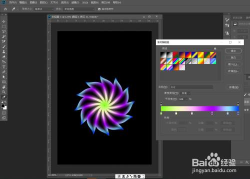 》G, 调出渐变色,选择一个渐变色,填充,效果如图