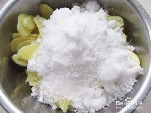 姜片加入白糖腌制约3小时,浸泡至白糖融化掉。