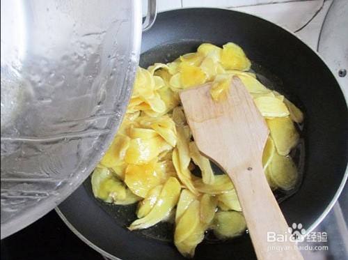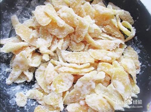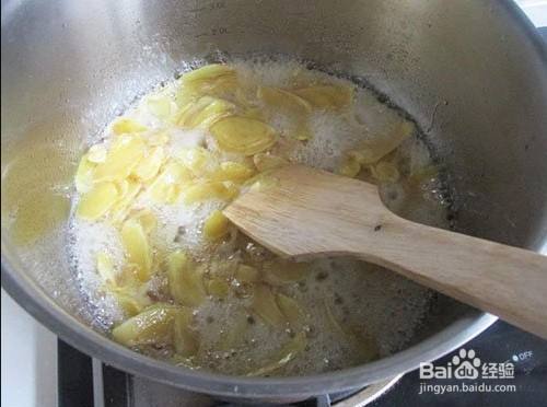 倒入炒锅最好选用不粘锅,不断翻炒姜糖