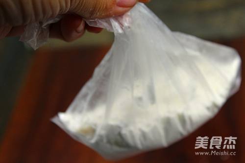 5初学者准备一个食品保鲜袋,放2勺淀粉,将腌制好的蘑菇分次加口袋里。