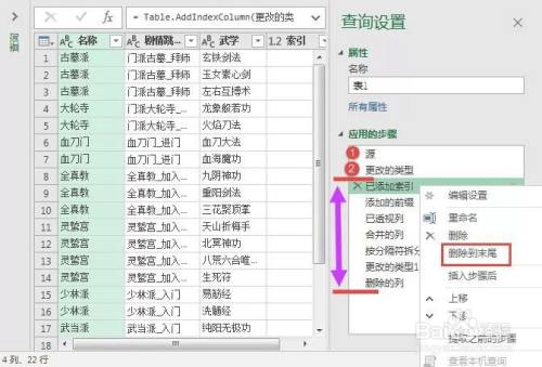 在【应用的步骤】中我们可以查看每一步操作,我们发现第一步,第二步我们无需改变,所以我们可以保留,后面的步骤不是我们想要的,我们可以点步骤前面的X删除,也可以如下图中右键直接删除到末尾,这样我们就清理干净了得到结果。