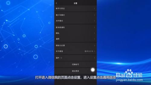 打开进入微信我的页面点击设置,进入设置点击通用选项。
