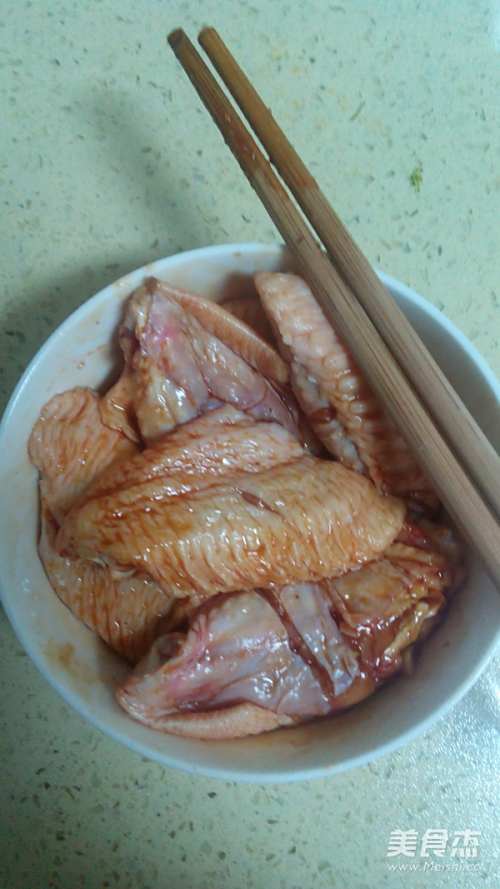 1鸡翅提前解冻,前后都切两道划痕