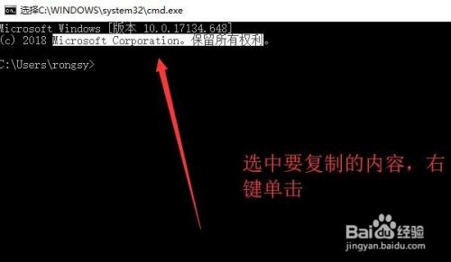 接着回到CMD命令行界面就可以拖懂鼠标选择要复制的内容,选择好以后右键单击一下就复制成功了
