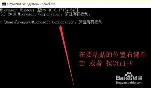 最后如果要在CMD中粘贴内容就直接按Ctrl+V或者右键单击即可,如下图所示