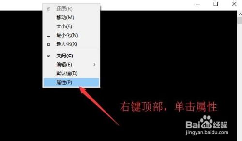 接着打开CMD命令行以后右键单击顶部的标题栏,在出现的界面中选择属性