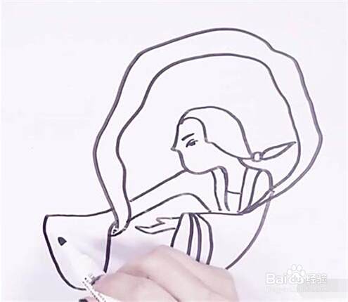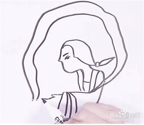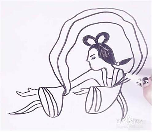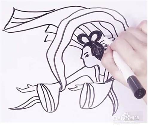 然后就是嫦娥头部就是头发发束,画完就是沿着丝巾的手臂。