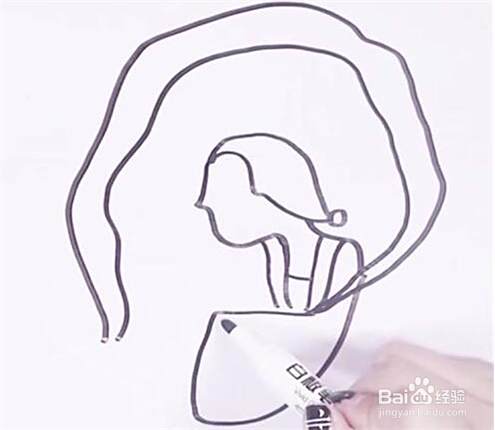 画完手臂就是头发了,头发轮廓已经出来了所以涂黑了头发部分。