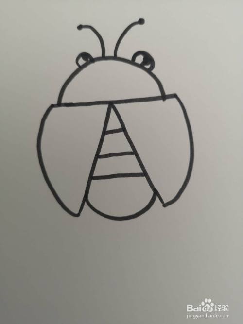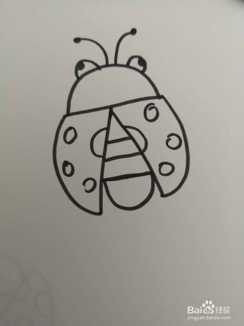 3. 然后画上七星瓢虫的小屁股和大大的翅膀。