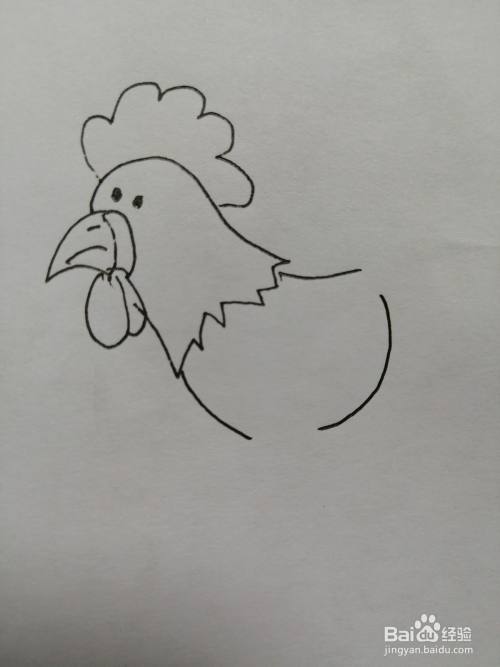 第四步,然后我们继续把可爱的大公鸡的身体部分画出来,注意身体轮廓的画法。