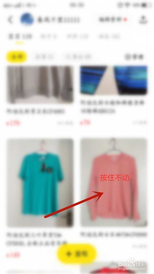 进入到个人发布商品的页面,按住要置顶的商品不动。