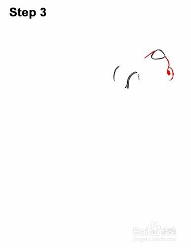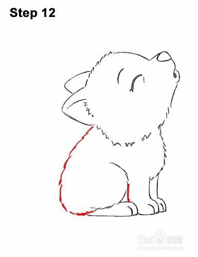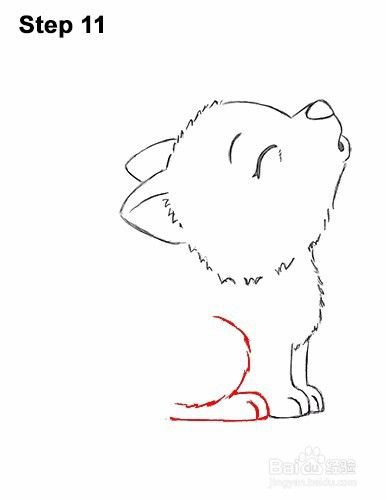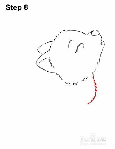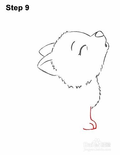 第8步:在头部下方的右侧,绘制一条弯曲的垂直线,由狼小狗胸部的短行程构成。