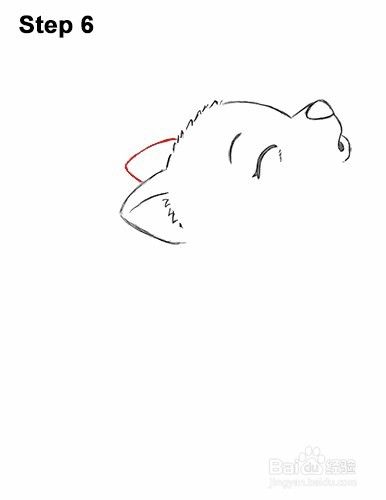 第6步:在狼的头部另一侧的耳朵上,在第一只耳朵上方加一条较小的斜线。