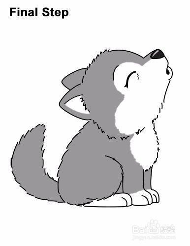 最后一步:使用彩色铅笔,记号笔甚至蜡笔为你的狼嚎图画上色!使用灰色在脸上创建轮廓。除了狼的脸部,胸部和爪子以外身体灰色。使用黑色的鼻子,但留下条状的空白闪耀。不要忘记暂停视频以自己的速度绘制。