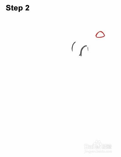 步骤2:在眼睛的右上方做一个小标记,以指示狼小狗的鼻子位置。在那个标记处,为鼻子绘制一个小三角形。与闭眼相比,鼻子的三角形不应该太大。