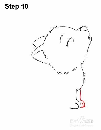 第10步:为狼小狗的另一只前脚画一个类似的形状。不要忘记脚趾!