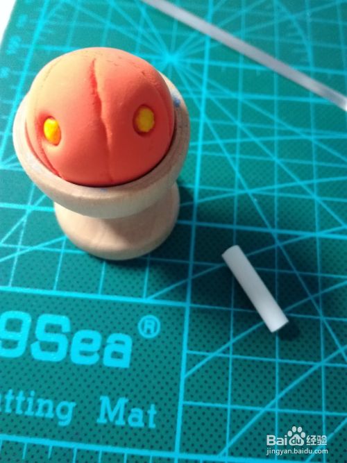 接着制作帽子上的恶魔角,用灰色粘土捏出形状
