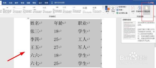 4最后,确认对话框后,选中第一行,点击菜单栏上的“设计-页面边框”,在边框界面,选择细线,添加到预览框下边,确认对话框后,查看文档,三线图做好了。   END END