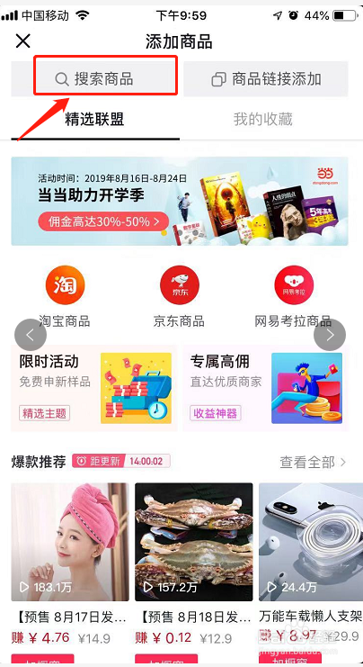进入商品添加页面,在搜索框输入你需要的添加的商品类别或名称,找到要添加的商品,按“加橱窗”