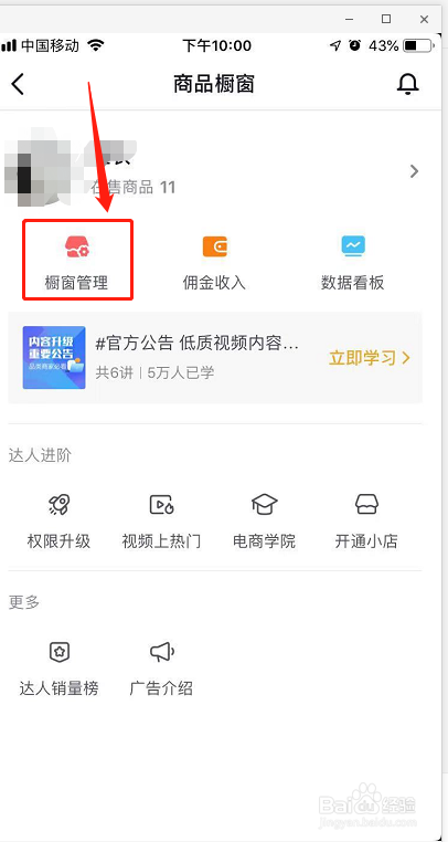 进入商品橱窗页面,点击橱窗管理