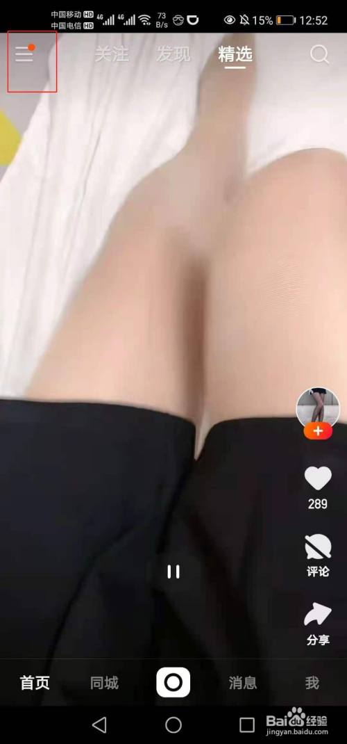 如图所示,进入快手视频首页,点击左上角的主菜单。