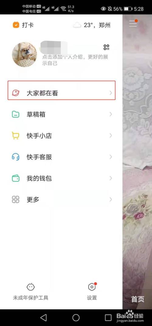 如下图所示,在快手主菜单,选择“大家都在看”。