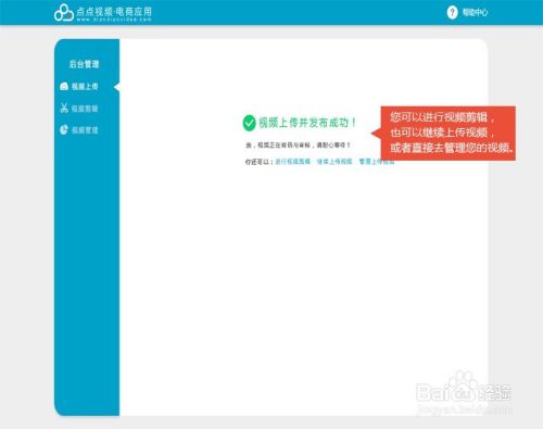 视频上传后,看到提示信息就证明视频上传成功了。但是注意,这个时候操作还没有完成。显示效果如图所示: