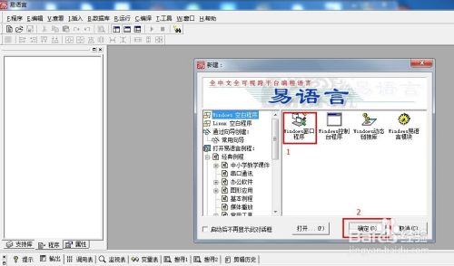 运行“易语言”主程序,弹出“新建工程对话框”→“Windows窗口程序”→“确定”,进入“Windows窗口程序工程界面”。
