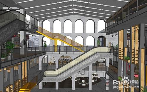 3. 设计师大胆地从文艺复兴时期中提取出廊拱结构应用到商场中。日光中穿梭于廊拱下,人与空间共同构成了一幅静美的剪影画,阳光洒落,在变幻的光线中整个空间呈现出美妙的光影意象,这是在任何一个商场所不能见到的。