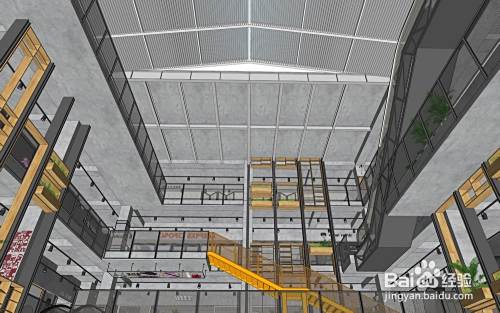 4. 建筑中庭顶部覆盖着玻璃斜顶,内侧是百叶窗,形似厂房屋顶却又不显封闭,采光充足却又不过于猛烈。