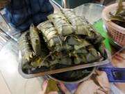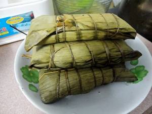 拿2片叶子,放入适量的糯米,然后用席草五花大绑。