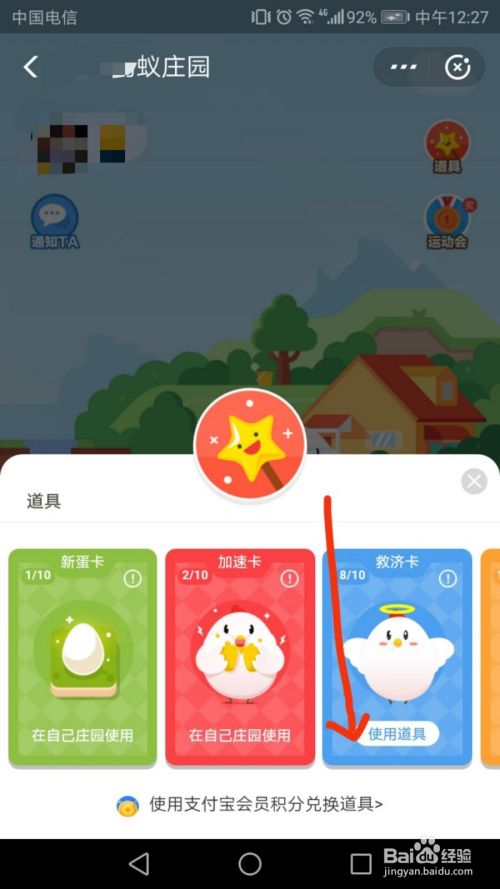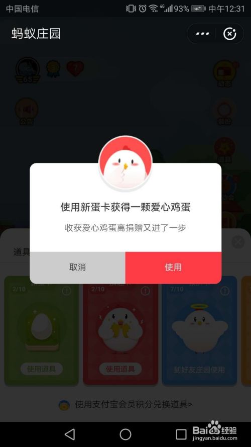 新蛋卡的作用就比较简单粗暴了,在自己的庄园,点击使用道具里的新蛋卡,蚂蚁就会推一个爱心鸡蛋出来,只需要收取爱心鸡蛋即可(下图1、2)。