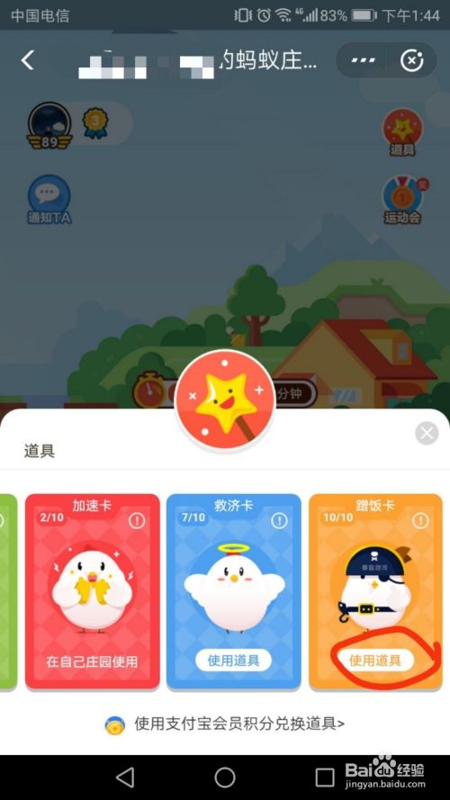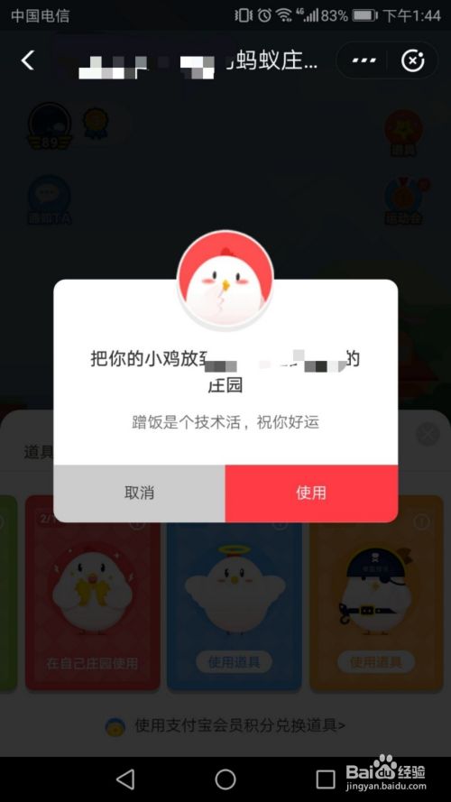 蹭吃卡的意思就是将自己的小鸡放到好友的庄园蹭吃,使用时只需要先查看哪个好友的庄园里面有饲料,进入好友庄园之后,点击右侧的道具,点击蹭吃卡,小鸡就可以开始蹭吃(下图1-3)。