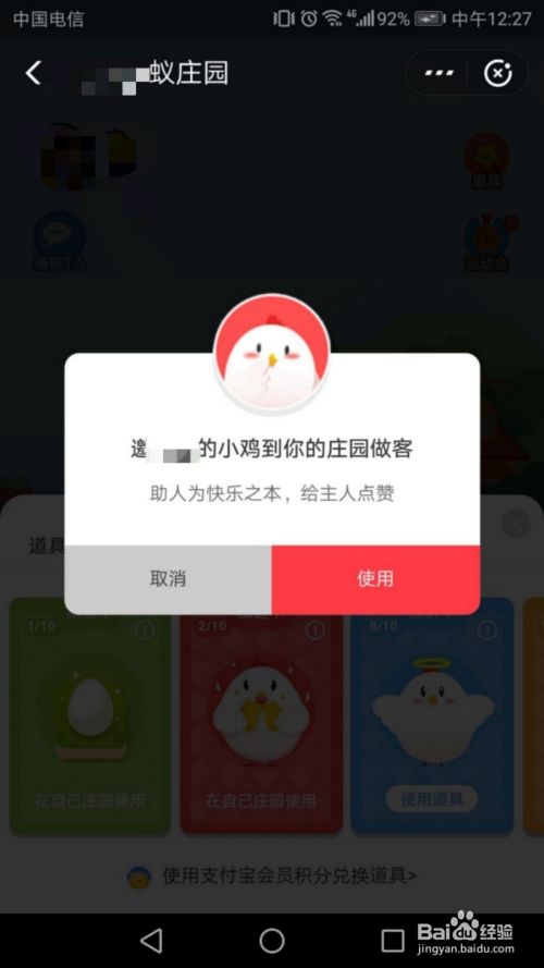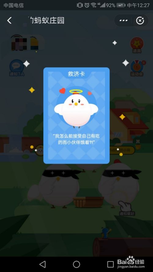 救济卡作用是救济好友的小鸡,当你的饲料太多,担心吃不完可以去好友庄园,点击道具里的救济卡,好友的小鸡就会自动跑到你的庄园了(下图1-5)。