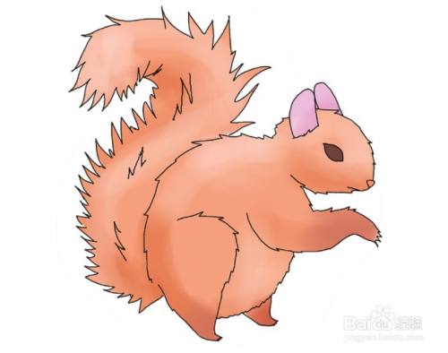 给松鼠上色。小松鼠的颜色根据品种不同各种各样的都有,从橙色、红色、棕色到灰色都可以。