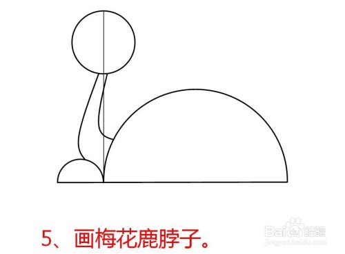 在两个半圆的交接处画一条竖线,作为待会儿梅花鹿头部的辅助线。